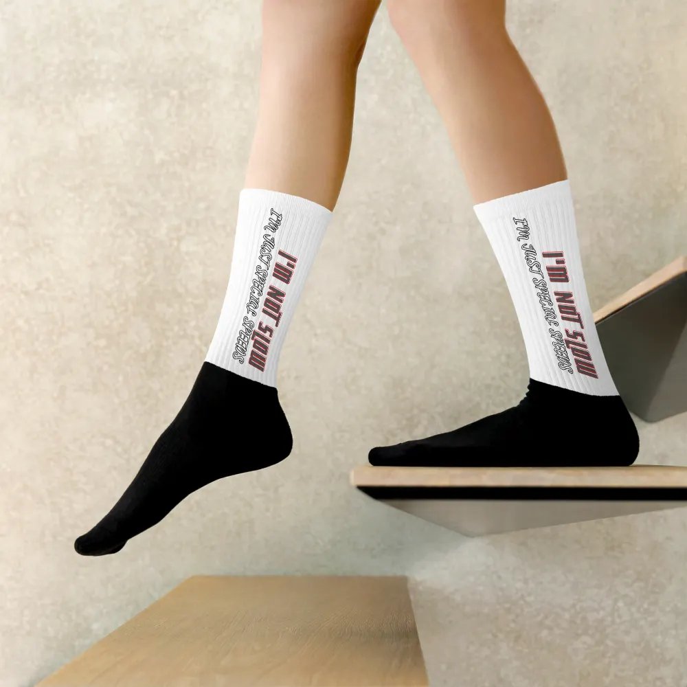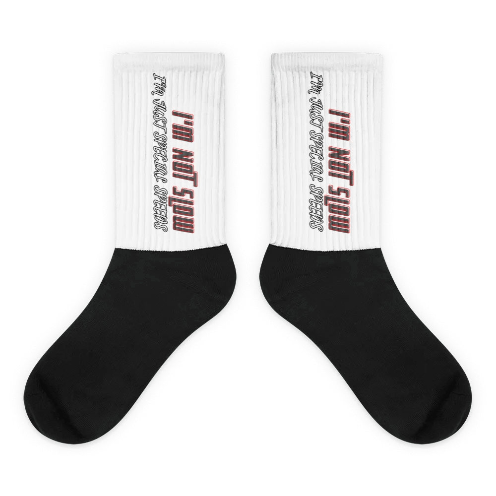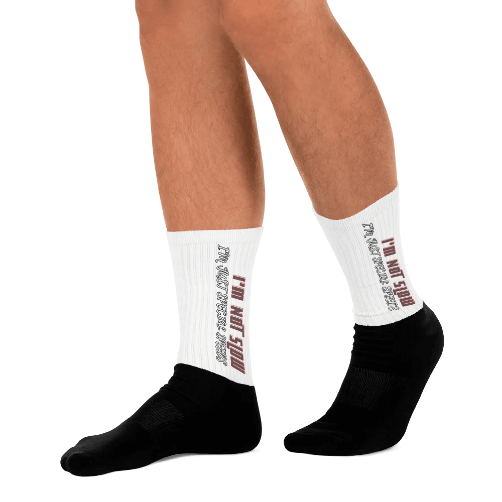 Wearing these socks is like having a secret joke with your feet. When you catch a glimpse of them, you'll be reminded that you're not slow; you're just all about those "Special Speeds." And, honestly, who wouldn't want to be?